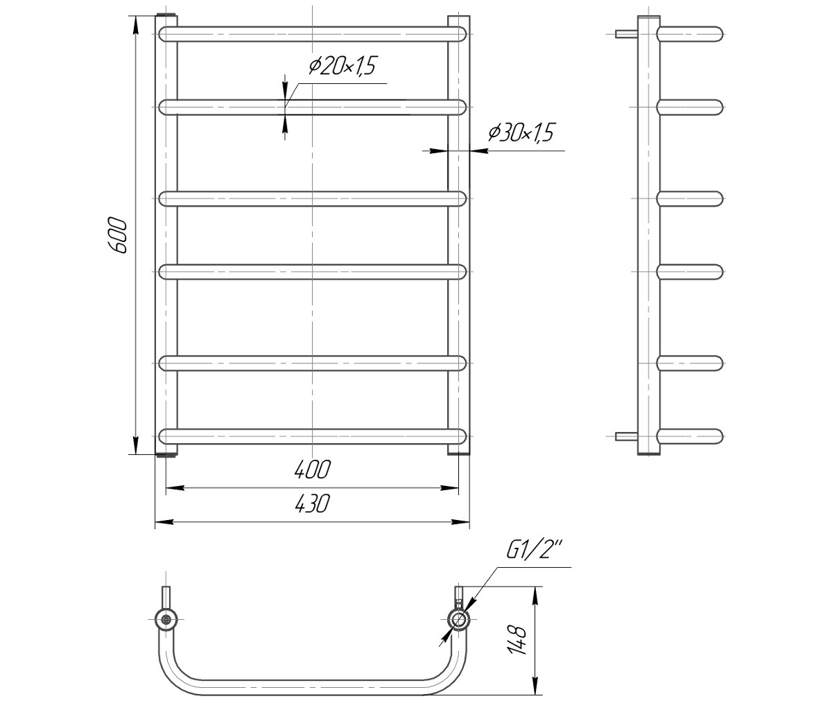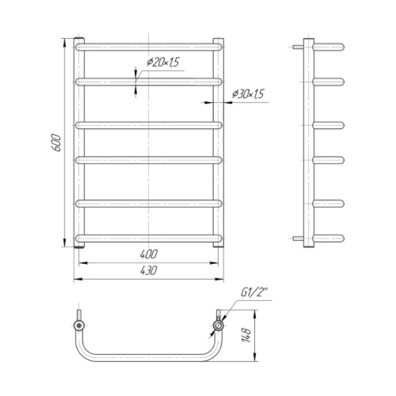 Водяна сушка для рушників Mario Практик Стандарт 600х430/400