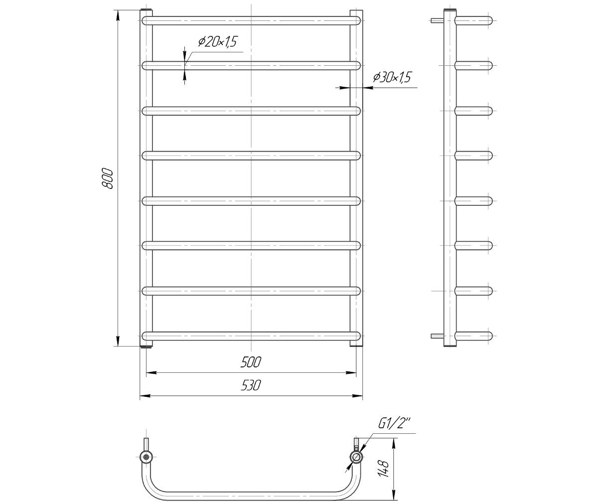Особливості водяної рушникосушарки Mario Практик Стандарт 800х530/500 (1.1.0207.01.P)